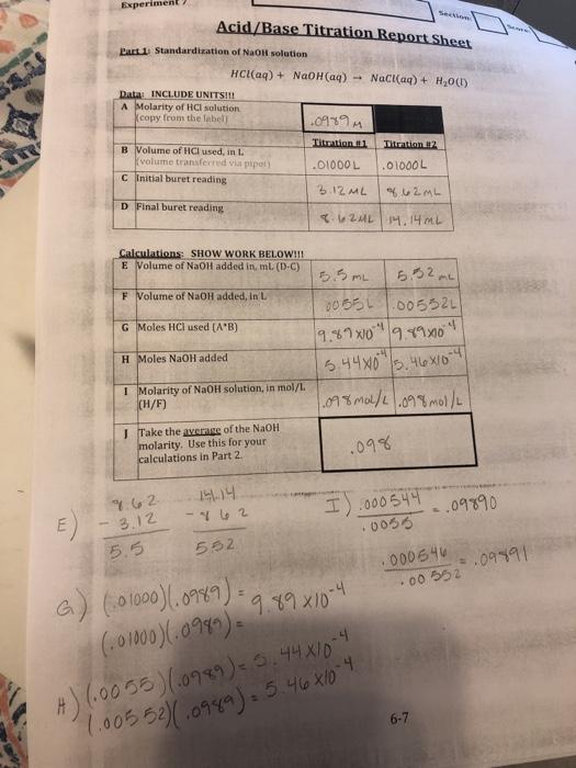 | Read Experiment Acid Base Titration Report Sheet Part 1 Chegg |